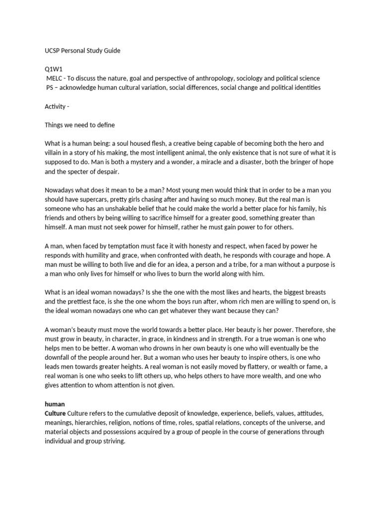 MELC - To discuss the nature, goal and perspective of anthropology, sociology and political science