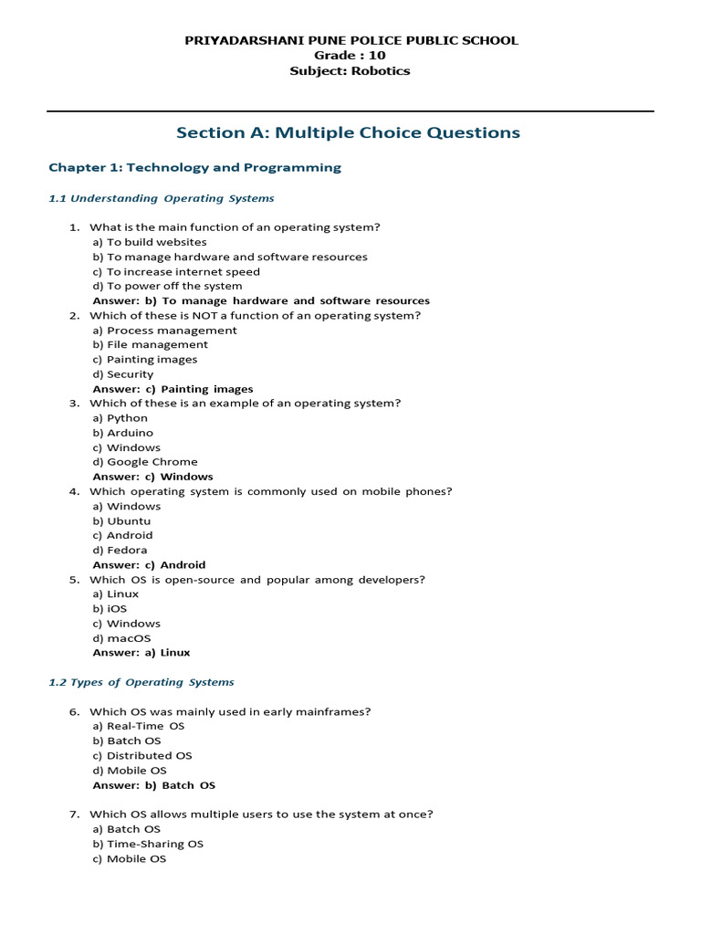 Section A: Multiple Choice Questions