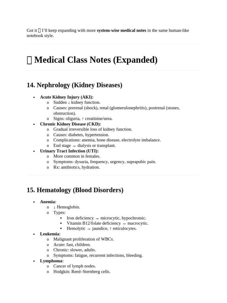 Got it ✅ I’ll keep expanding with more system-wise medical notes in the same human-like