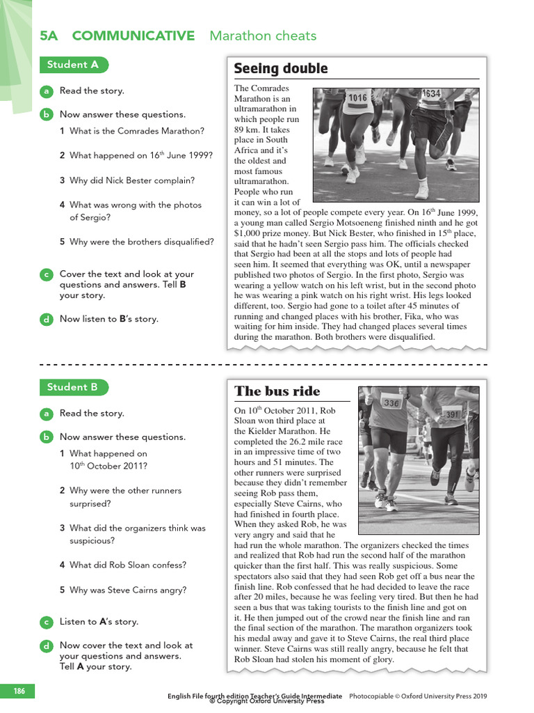 c Listen to A’s story. it. He then jumped out of the crowd near the finish line and ran