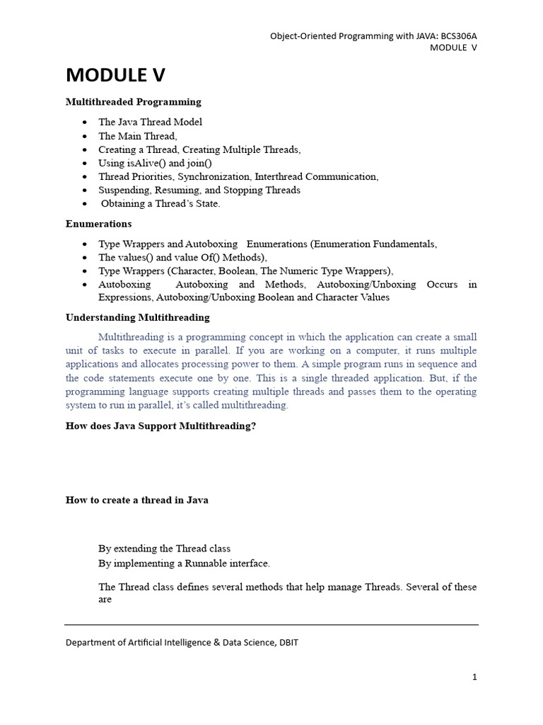o Synchronization: Java synchronization works with objects in Multithreading.