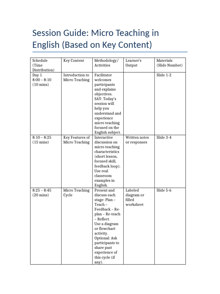 Session Guide: Micro Teaching in