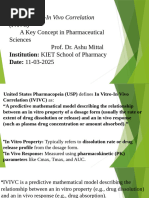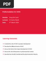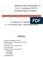 many formulations, each of them giving one pair of data (vitro and vivo). It is obvious that level B or C needs more data and, as they do not use all the information related to vitro and vivo behavior of the formulation, they are less powerful. The FDA ranked the levels as follows: A Level A IVIVC is considered the most informative and is recommended,if possible. Multiple Level C correlations can be as useful as Level A correlations. However,if a multiple Level C correlation is possible,then a Level A correlation is also likely and is preferred. Level C correlations can be useful in the early stages of formulation development when pilot formulations are being selected. Level B correlations are least useful for regulatory purposes. In vivo data are obtained from well-standardized fasted studies on healthy volunteers. In attempting to establish a Level A relationship, the major point to consider is the sampling schedule in the absorptionphase in order to have an accurate representation of the input curve. Establishing an IVIVC is nothing more complicated than trying to reproduce all the complex phenomena that lead to the in vivo release and solubilisation of the API in the gut in a simplein vitro system like a vessel agitated with a paddle! In contrast to in vivo studies, in vitro methods are less standardized,as USP Apparatus 1 to 4 could be used with various media (HCl, simple buffer, addition of surfactant or enzymes, etc.) and various technical parameters (e.g., volume, rate). This article will focus on the way to obtain in vitro data. Data Collection In Vivo Data The in vivo data are derived from the plasma concentration curve. Various phenomena can occur after administration of drug depending of the route of administration (8) (Figure 1).