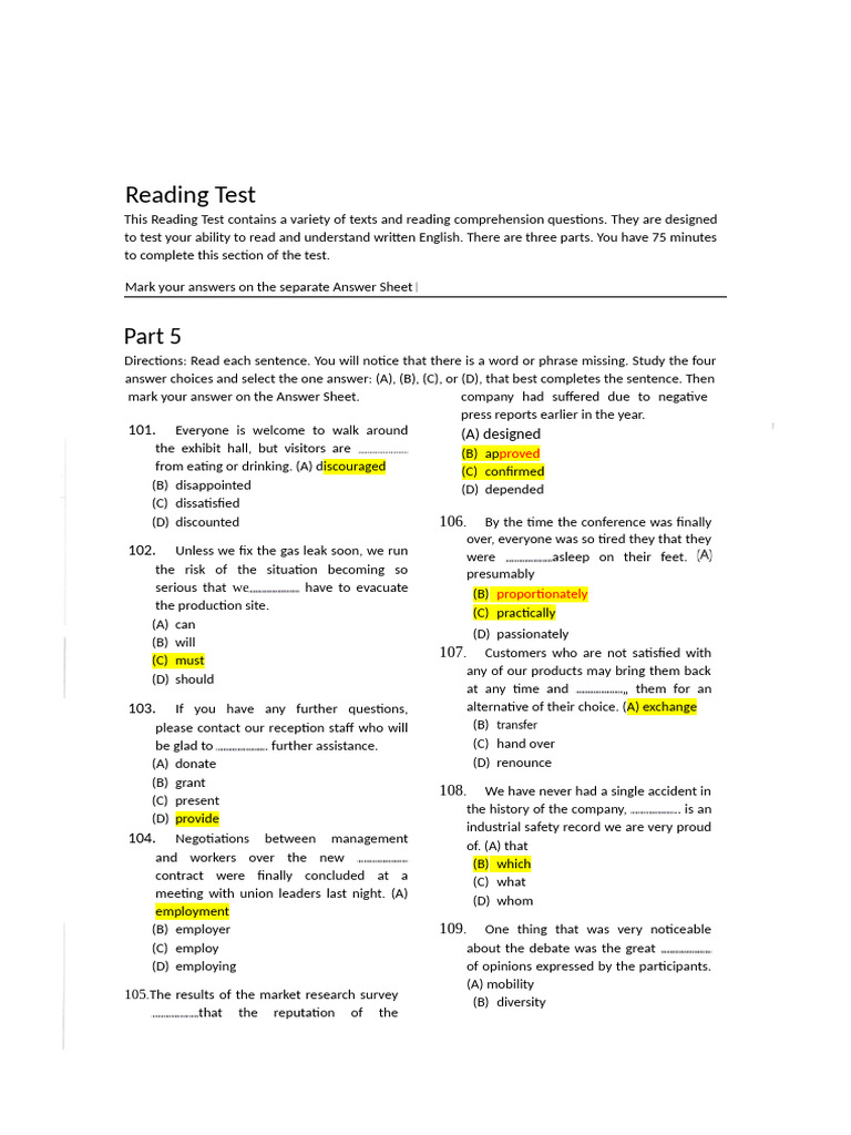 to test your ability to read and understand written English. There are three parts. You have 75 minutes