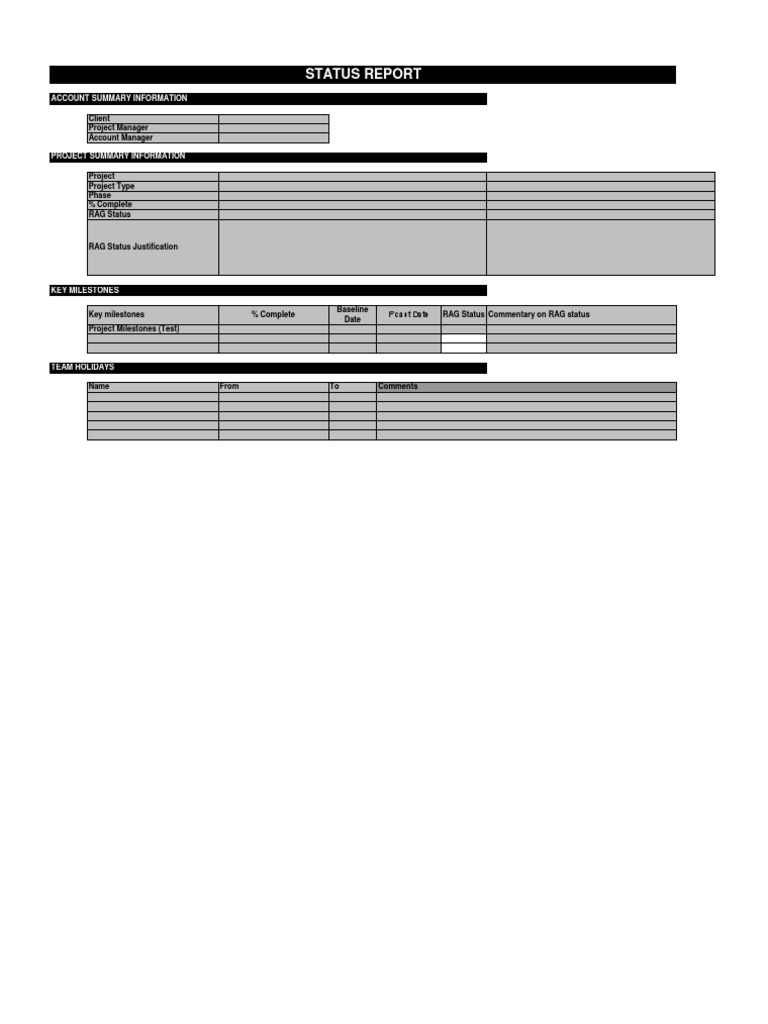 ACCOUNT SUMMARY INFORMATION Client Project Manager Account Manager PROJECT SUMMARY INFORMATION Project Project Type Phase % Complete RAG Status