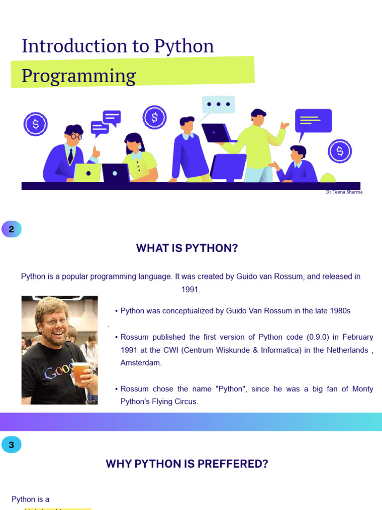 • Rossum chose the name "Python", since he was a big fan of Monty