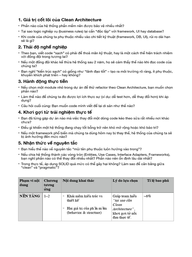 - Định nghĩa kiến trúc- Trọng tâm Clean ~15%