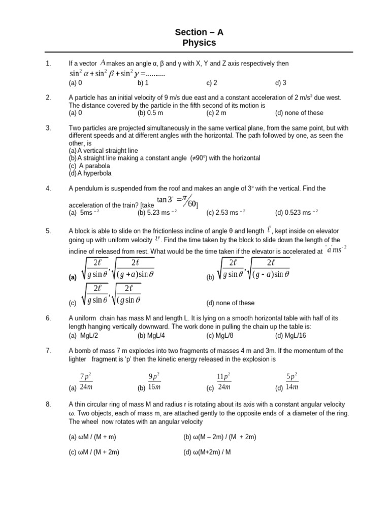 1. If a vector makes an angle α, β and γ with X, Y and Z axis respectively then