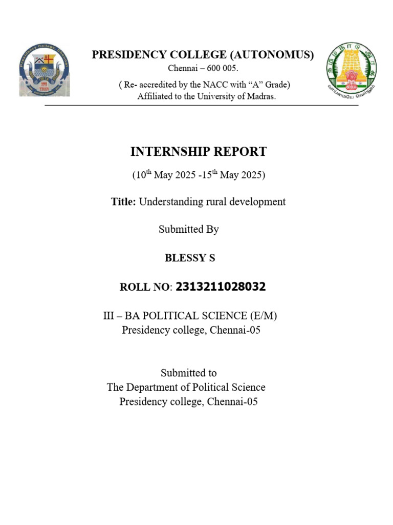 I, Blessy S, a student of III- B.A. Political Science (English Medium),