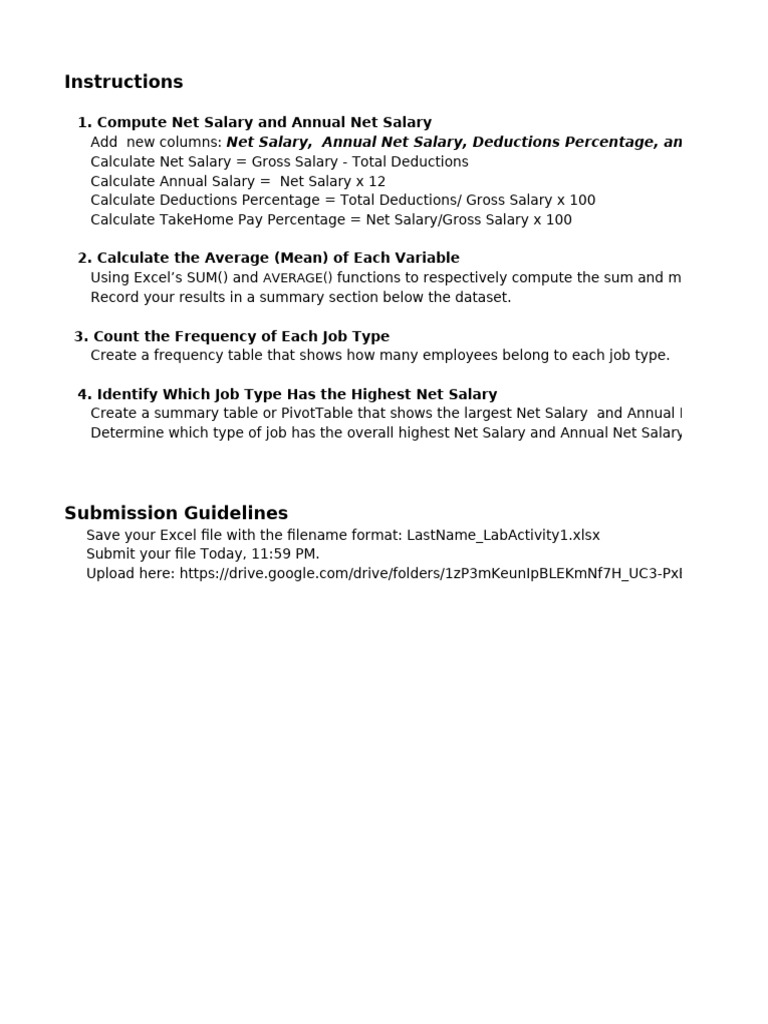 Save your Excel file with the filename format: LastName_LabActivity1.xlsx