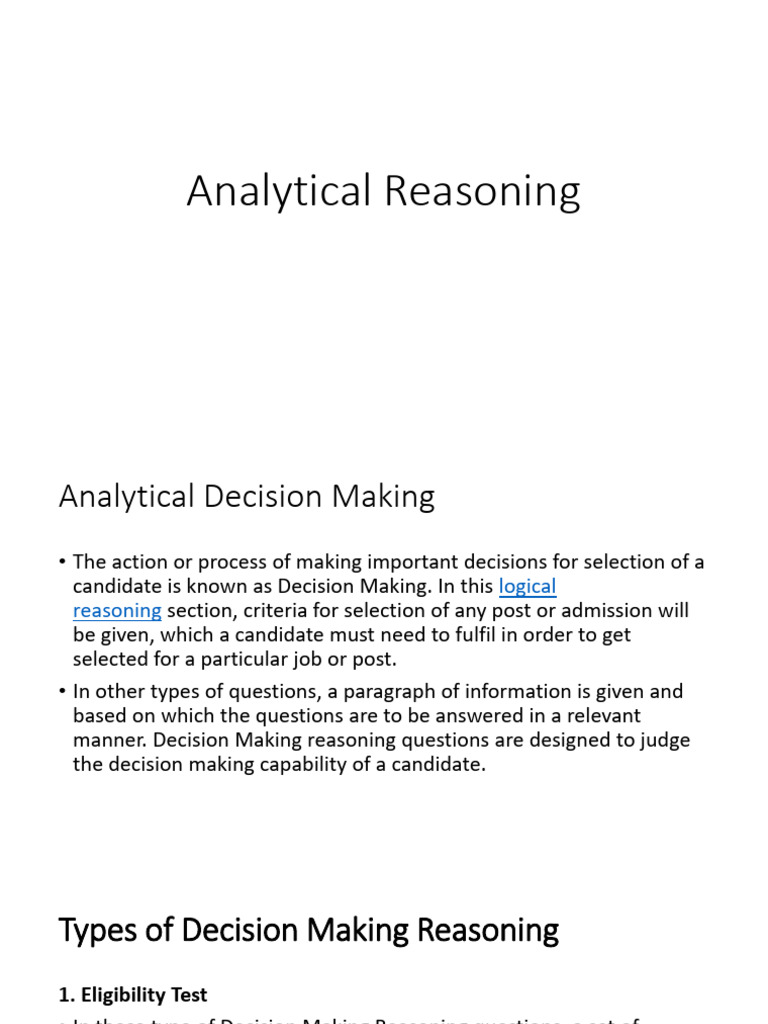 • Solution: If we analyze the given data with the statements given above, we see that the candidate