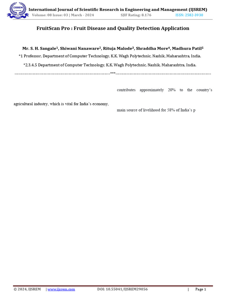 around the world. Therefore, it is necessary to identify In India, classification of good fruits and bad fruits in