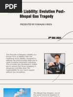 large scale leakage of deadly gas. Supreme Court did not follow strict liability in this case and evolved absolute