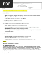 An argumentative paragraph presents a clear opinion (also called a claim) and supports it with reasons