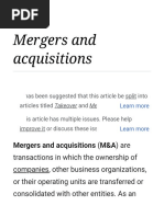 2.0 Acquisitions, Divestitures, Spin-Offs, Carve-Outs and Buyouts Generally speaking, an acquisition occurs when one company takes a controlling ownership interest in another firm, a legal subsidiary of another firm, or selected assets of another firm such as a manufacturing facility. An acquisition may involve the purchase of another firms assets or stock, with the acquired firm continuing to exist as a legally owned subsidiary. In contrast, a divestiture is the sale of all or substantially all of a company or product line to another party for cash or securities. A spin-off is a transaction in which a parent creates a new legal subsidiary and distributes shares in the subsidiary to its current shareholders as a stock dividend. An equity carveout describes a transaction in which the parent firm issues a portion of its stock or that of a subsidiary to the public A leveraged buyout (LBO) or highly leveraged transaction involves the purchase of a company financed primarily by debt. While LBOs commonly involve privately owned firms, the term often is applied to a firm which buys back its stock using primarily borrowed funds to convert from a publicly owned to a privately owned company.