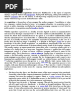 Understanding Mergers, Acquisitions, and Other Corporate Restructuring Terminology This article is extracted from the textbook Mergers, Acquisitions and Other Restructuring Activities by Donald M. DePamphilis. 1.0 Mergers and Consolidations Mergers can be described from a legal perspective and from an economic perspective. This distinction is relevant to discussions concerning deal structuring, regulatory issues, and strategic planning. 1.1 A Legal Perspective This perspective refers to the legal structure used to consummate the transaction. Such structures may take on many forms depending on the nature of the transaction. A merger is a combination of two or more firms in which all but one legally cease to exist, and the combined organization continues under the original name of the surviving firm. In a typical merger, shareholders of the target firm exchange their shares for those of the acquiring firm, after a shareholder vote approving the merger. Minority shareholders, those not voting in favor of the merger, are required to accept the merger and exchange their shares for those of the acquirer. If the parent firm is the primary shareholder in the subsidiary, the merger does not require approval of the parents shareholders in the majority of states. Such a merger is called a short form merger. The principal requirement is that the parents ownership exceeds the minimum threshold set by the state. For example, Delaware allows a parent corporation to merge without a shareholder vote with a subsidiary if the parent owns at least 90 percent of the outstanding voting shares. A statutory merger is one in which the acquiring company assumes the assets and liabilities of the target in accordance with the statutes of the state in which the combined companies will be incorporated. A subsidiary merger involves the target becoming a subsidiary of the parent. To the public, the target firm may be operated under its brand name, but it will be owned and controlled by the acquirer. Although the terms mergers and consolidations often are used interchangeably, a statutory consolidation, which involves two or more companies joining to form a new company, is technically not a merger. All legal entities that are consolidated are dissolved during the formation of the new company, which usually has a new name. In a merger, either the acquirer or the target survives. The 1999 combination of Daimler-Benz and Chrysler to form DaimlerChrysler is an example of a consolidation. The new corporate entity created as a result of consolidation or the surviving entity following a merger usually assumes ownership of the assets and liabilities of the merged or consolidated organizations. Stockholders in merged companies typically exchange their shares for shares in the new company. A merger of equals is a merger framework usually applied whenever the merger participants are comparable in size, competitive position, profitability, and market capitalization. Under such circumstances, it is unclear if either party is ceding control to the other and which party is providing the greatest synergy. Consequently, target firm shareholders rarely receive any significant premium for their shares. It is common for the new firm to be managed by the former CEOs of the merged firms who will be co-equal and for the composition of the new firms board to have equal representation from the boards of the merged firms. In such transactions, it is uncommon for the ownership split to be equally divided. The 1998 formation of Citigroup from Citibank and Travelers is an example of a merger of equals. Research suggests that the CEOs of target firms in such transactions often negotiate to retain a significant degree of control in the merged firm for both their board and management in exchange for a lower premium for their shareholders.