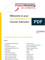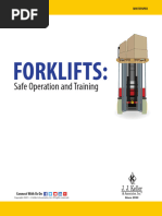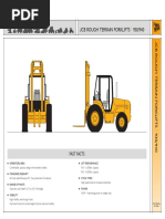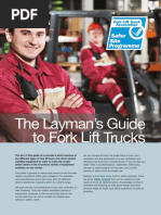 in use in the workplace. Some of these are:COUNTERBALANCE FORK-LIFT TRUCK The fork-lift truck mostly used in the workplace is counterbalance forklift truck. It carries the load in front and the load is counterbalanced by a weight at the rear. The load can be raised or lowered the mast tilts forwards or backwards This type of truck is used in workplaces such as warehouses and workshops etc. ROUGH TERRAIN FORK-LIFT TRUCK This type of truck operates the same way as the counterbalance truck but has large pneumatic (air filled) tyres which gives a greater ground clearance and is designed to work on soft, uneven ground as may be found on construction sites. The 2 most common versions are a vertical mast truck the same as a counterbalance one fitted with a telescopic handler.