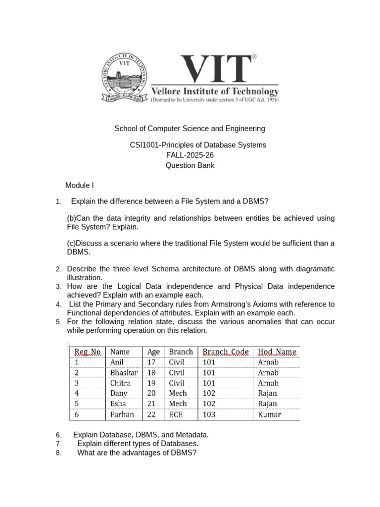 CSI1001-Principles of Database Systems