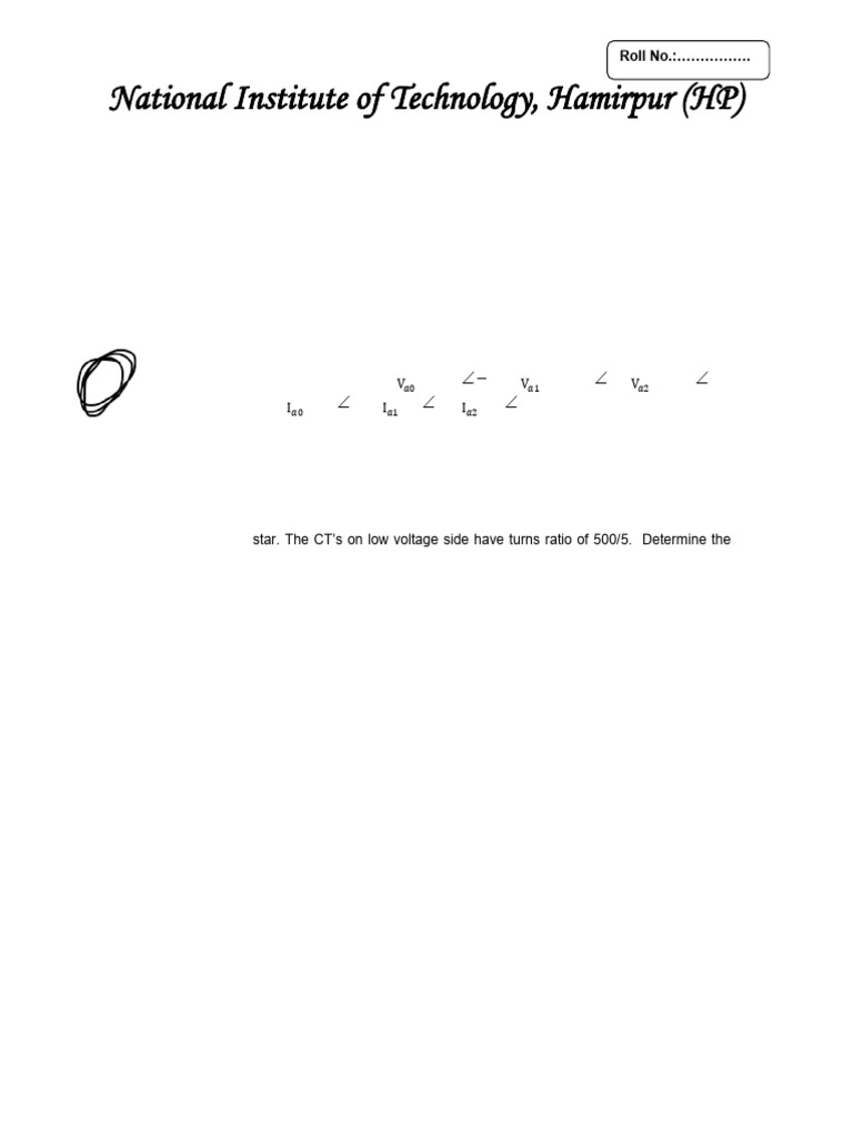 connected in delta-star. The CT’s on low voltage side have turns ratio of 500/5. Determine the