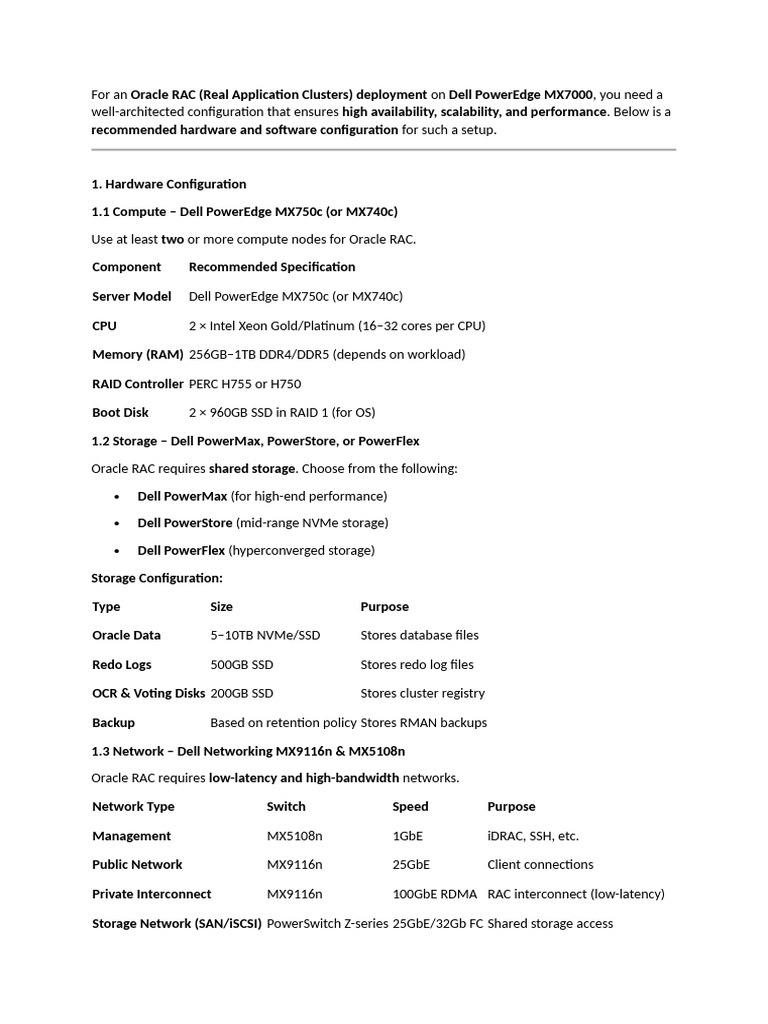 For an Oracle RAC (Real Application Clusters) deployment on Dell PowerEdge MX7000, you need a