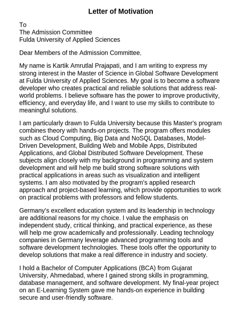 My name is Kartik Amrutlal Prajapati, and I am writing to express my