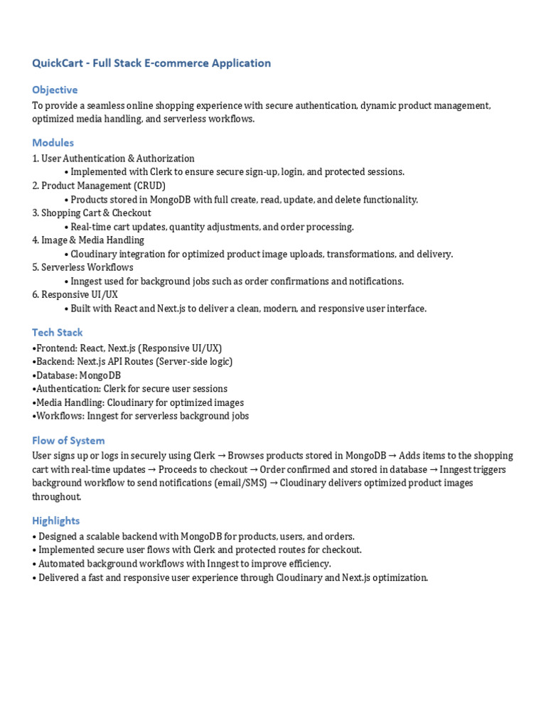 • Designed a scalable backend with MongoDB for products, users, and orders.