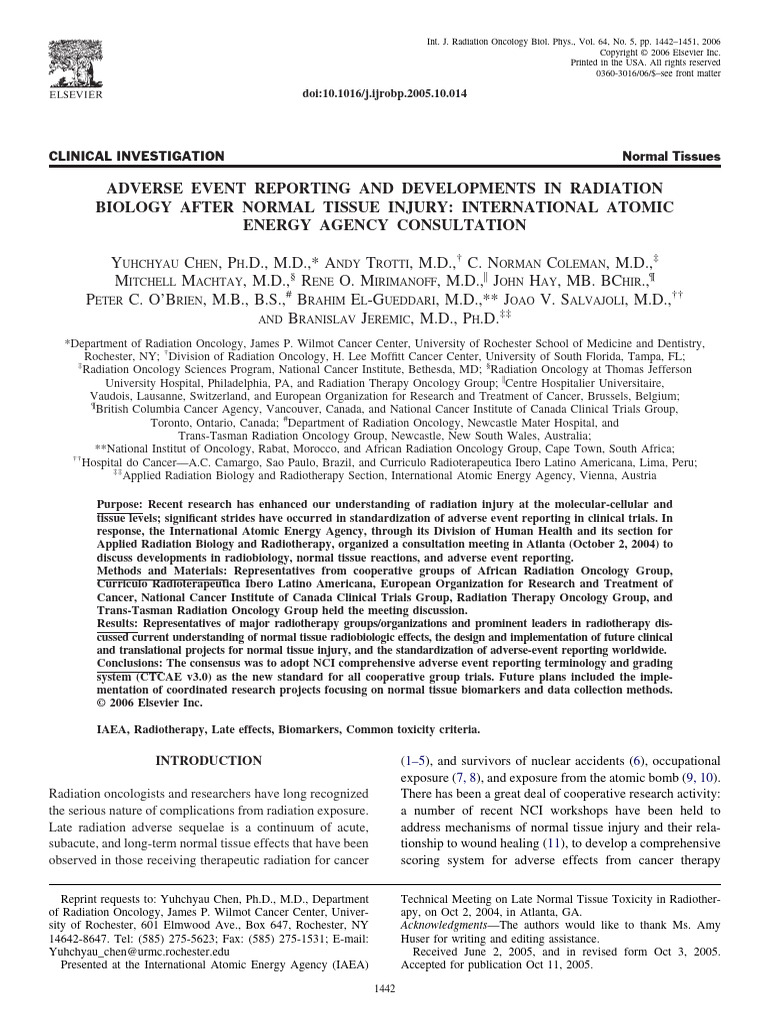 IAEA 2005 radiation normal tissue injury report ● Y. CHEN et al. 1443