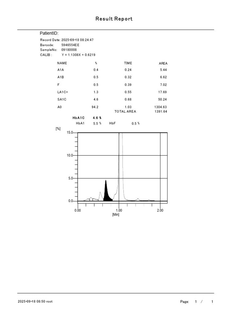 HbA1c (Glycosylated Haemoglobin) 4.6 % Normal/Low Risk < 5.7 HPLC