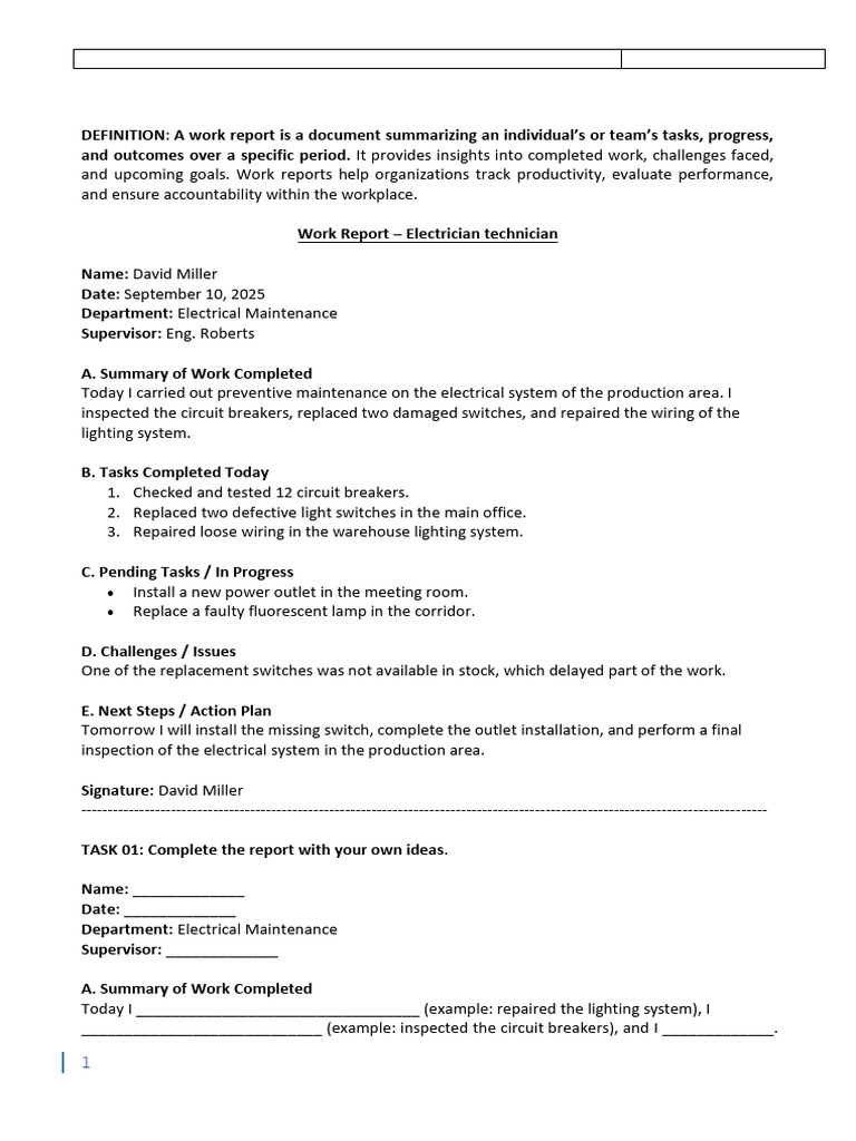 Work Report – Electrician technician