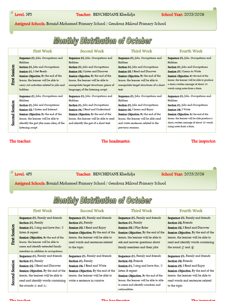 Assigned Schools: Bouzid Mohamed Primary School / Gendouz Miloud Primary School