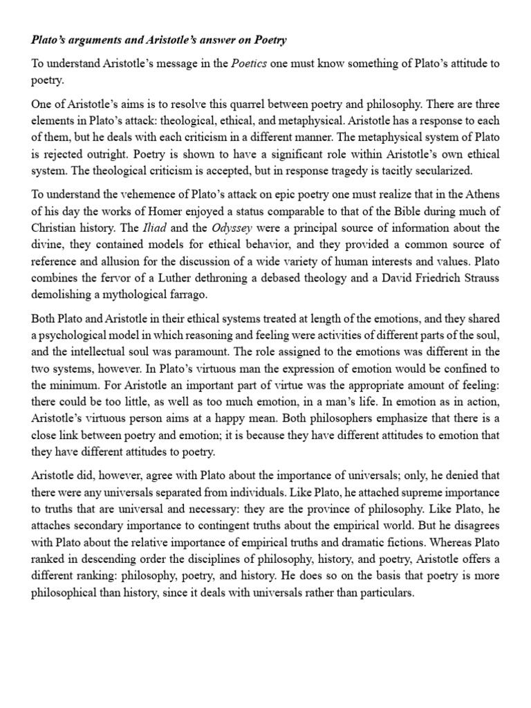 Plato’s arguments and Aristotle’s answer on Poetry