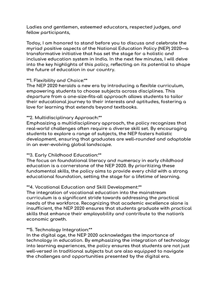 myriad positive aspects of the National Education Policy (NEP) 2020—a