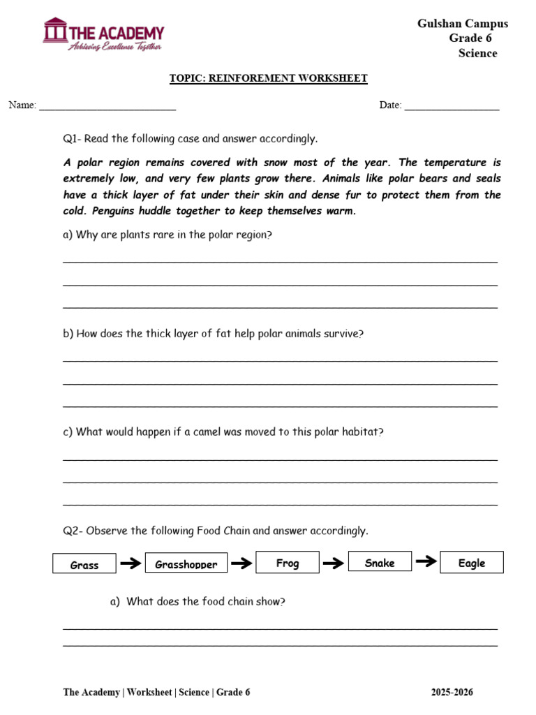 The Academy | Worksheet | Science | Grade 6 2025-2026