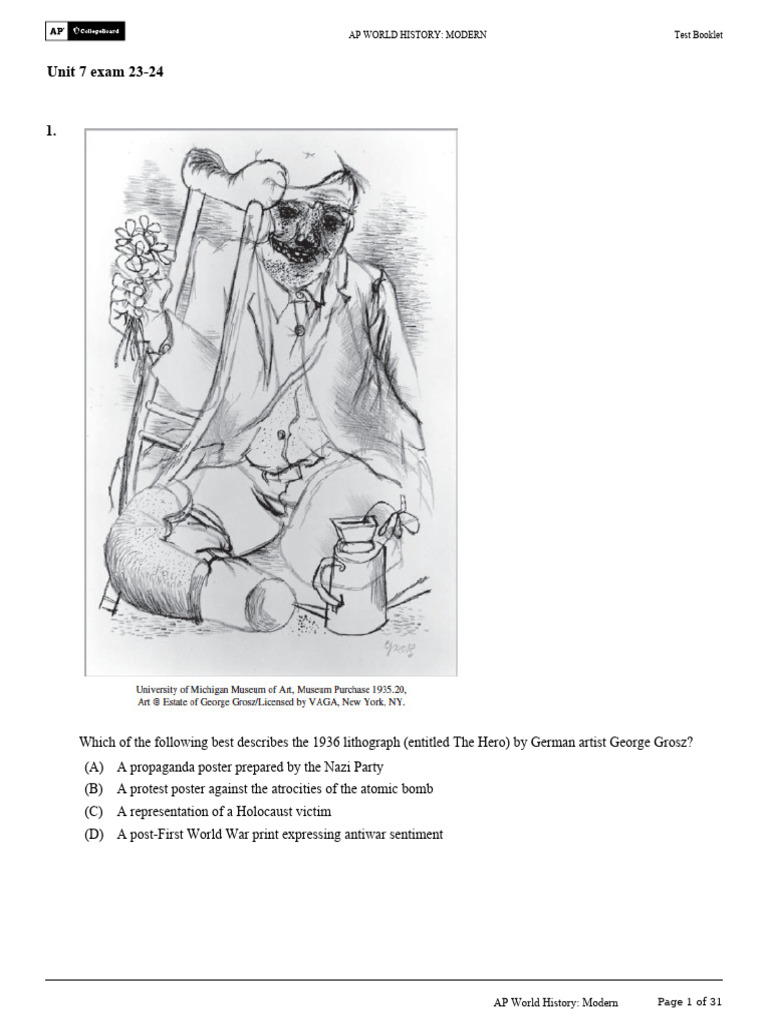 Which of the following best describes the 1936 lithograph (entitled The Hero) by German artist George Grosz?