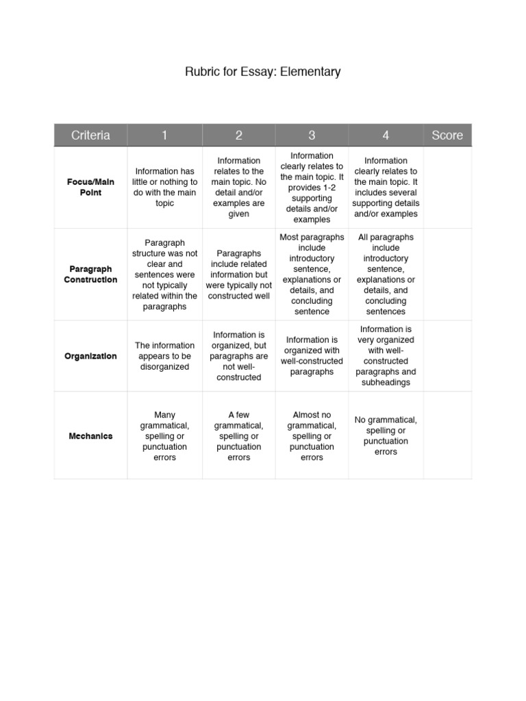 Rubric for Essay: Elementary