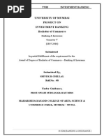 REVIEW OF LITERATURE Who needs an Investment Bank? Any firm contemplating a significant transaction can benefit from the advice of an investment bank. Although large corporations often have sophisticated finance and corporate development departments provide objectivity, a valuable contact network, allows for efficient use of client personnel, and is vitally interested in seeing the transaction close. Most small to medium sized companies do not have a large in-house staff, and in a financial transaction may be at a disadvantage versus larger competitors. A quality investment banking firm can provide the services required to initiate and execute a major transaction, thereby empowering small to medium sized companies with financial and transaction experience without the addition of permanent overhead, an investment bank provides objectivity, a valuable contact network, allows for efficient use of client personnel, and is vitally interested in seeing the transaction close. Most small to medium sized companies do not have a large in-house staff, and in a financial transaction may be at a disadvantage versus larger competitors. A quality investment-banking firm can provide the services Organizational structure of an investment bank The main activities and units The primary function of an investment bank is buying and selling products both on behalf of the bank's clients and also for the bank itself. Banks undertake risk