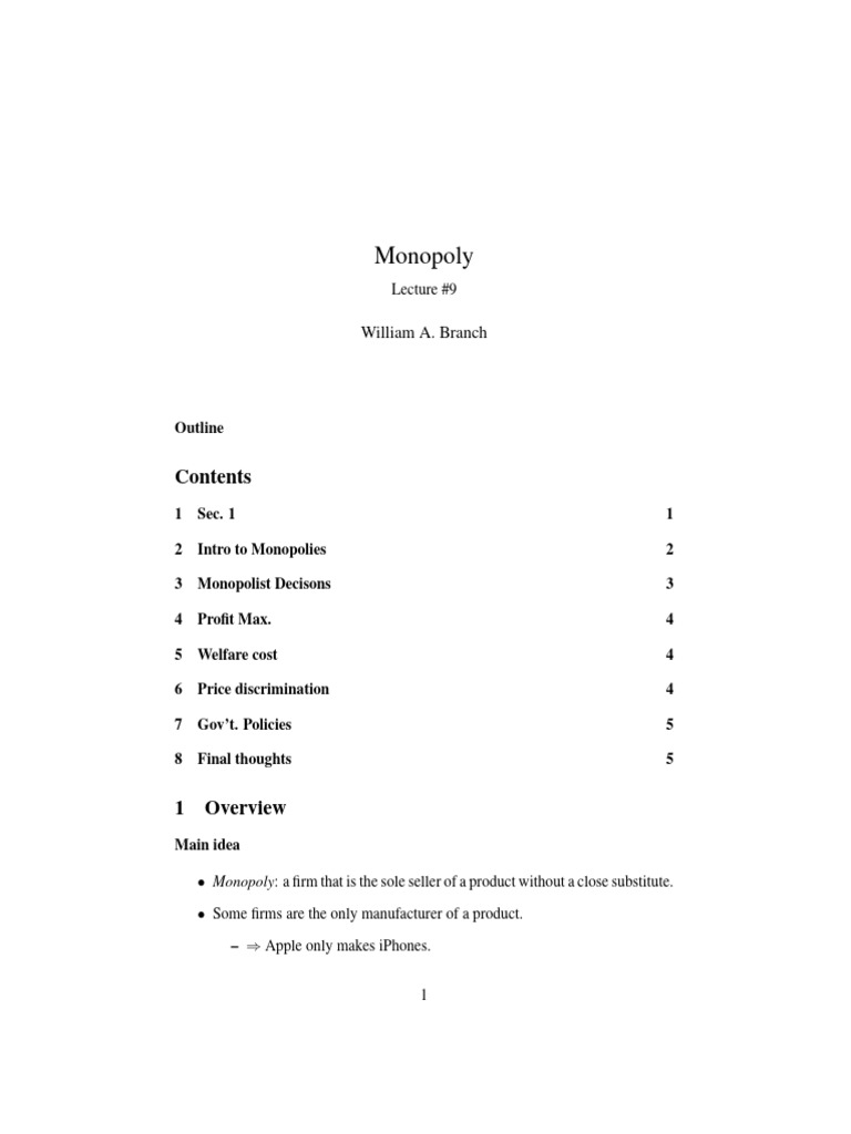 • Monopoly: a firm that is the sole seller of a product without a close substitute.
