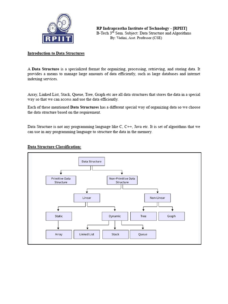 B-Tech 3rd Sem. Subject: Data Structure and Algorithms