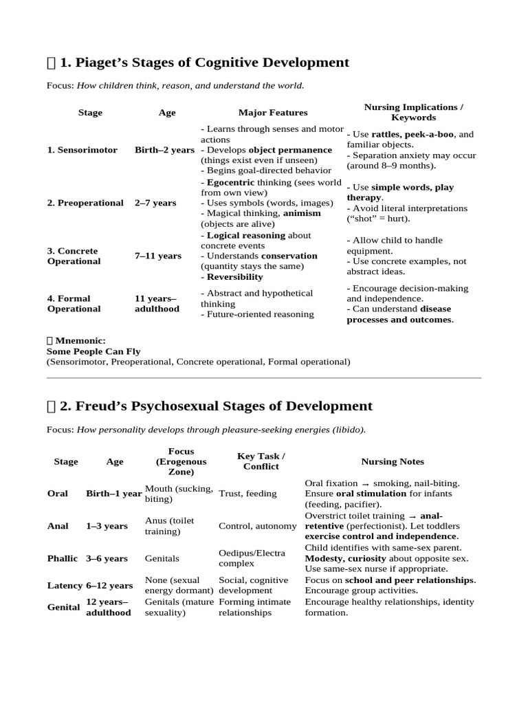 Piaget Cognitive development Thinking, logic, reasoning Age-appropriate teaching