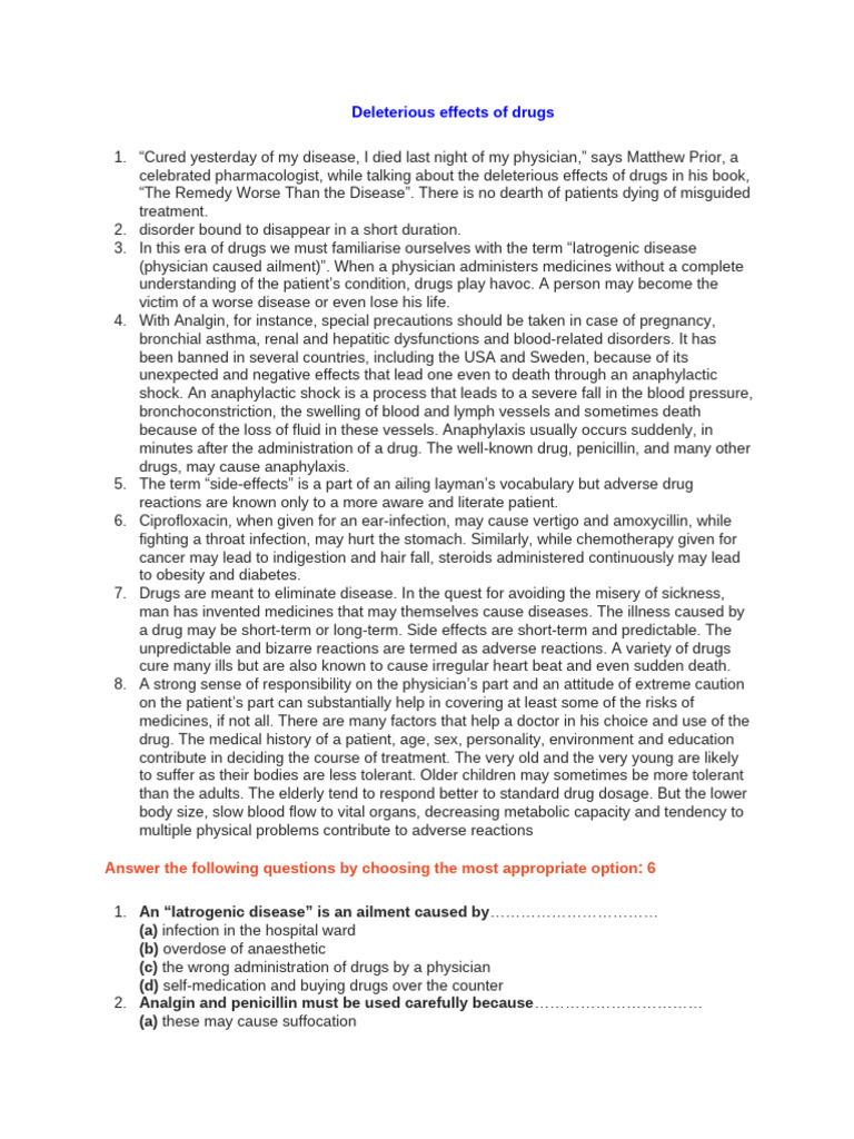 Deleterious effects of drugs
