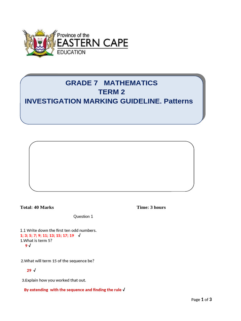 INVESTIGATION MARKING GUIDELINE. Patterns