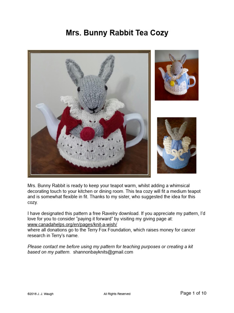 Mrs. Bunny Rabbit is ready to keep your teapot warm, whilst adding a whimsical