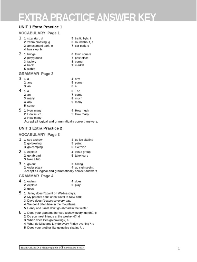 EXTRA PRACTICE ANSWER KEY