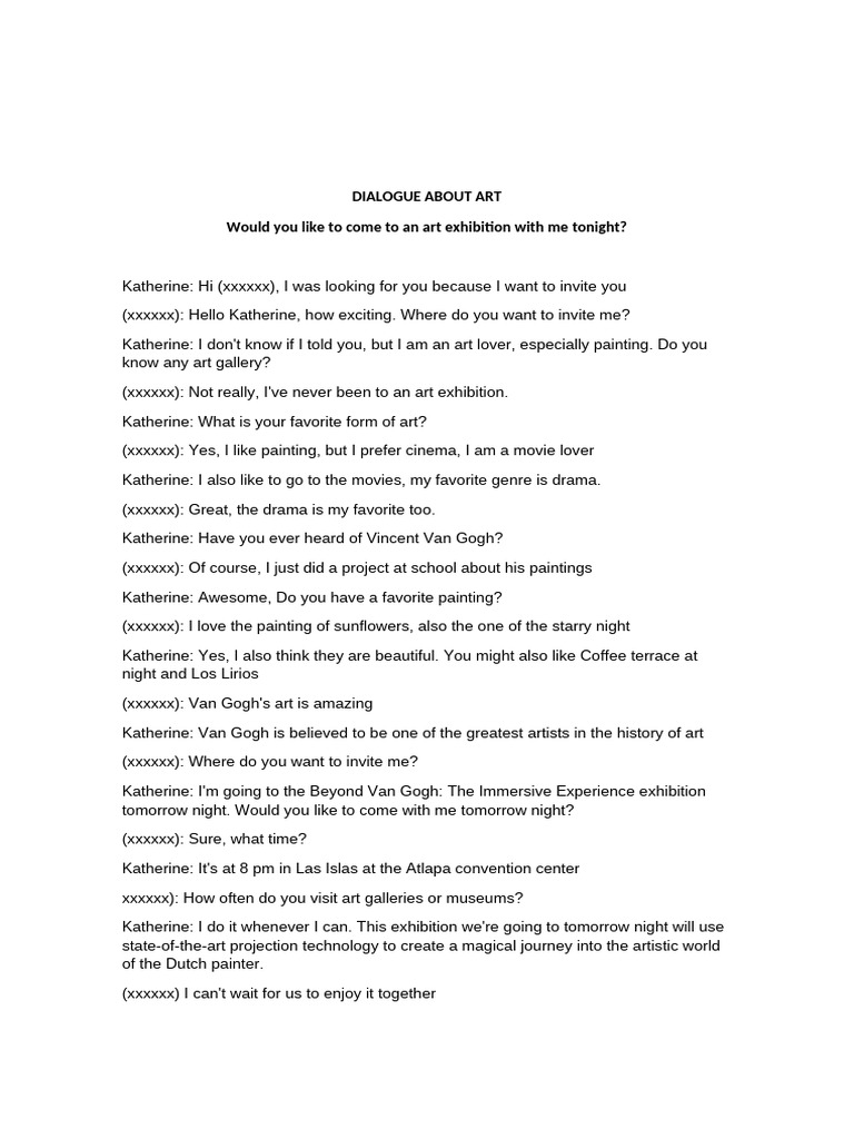 Katherine: I don't know if I told you, but I am an art lover, especially painting. Do you