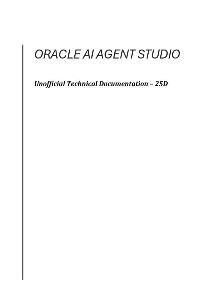 This document serves as a technical reference for implementing and managing Oracle AI Agent Studio within