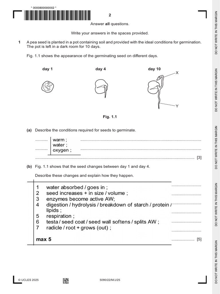 (c) Fig. 1.1 shows that after 10 days the structures labelled X and Y have developed from parts
