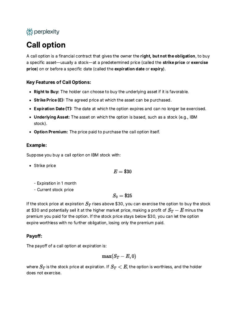 This explanation summarizes the core concepts of a call option found in the provided material [1]
