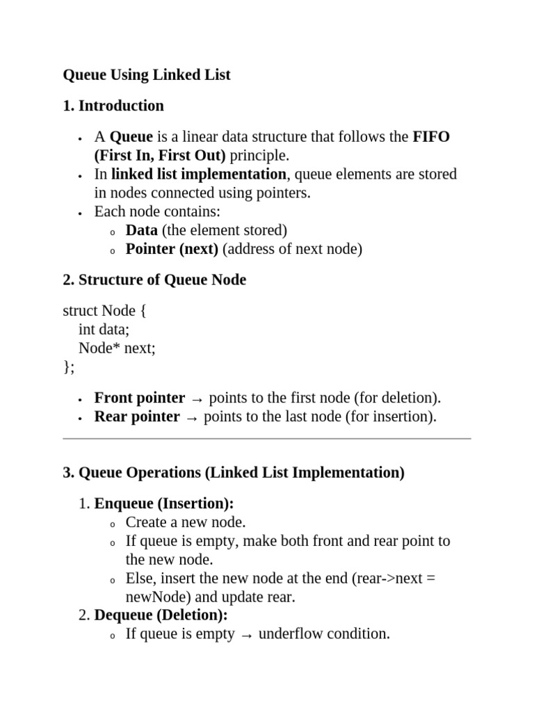 Front → [10 | *] → [20 | *] → [30 | NULL] ← Rear