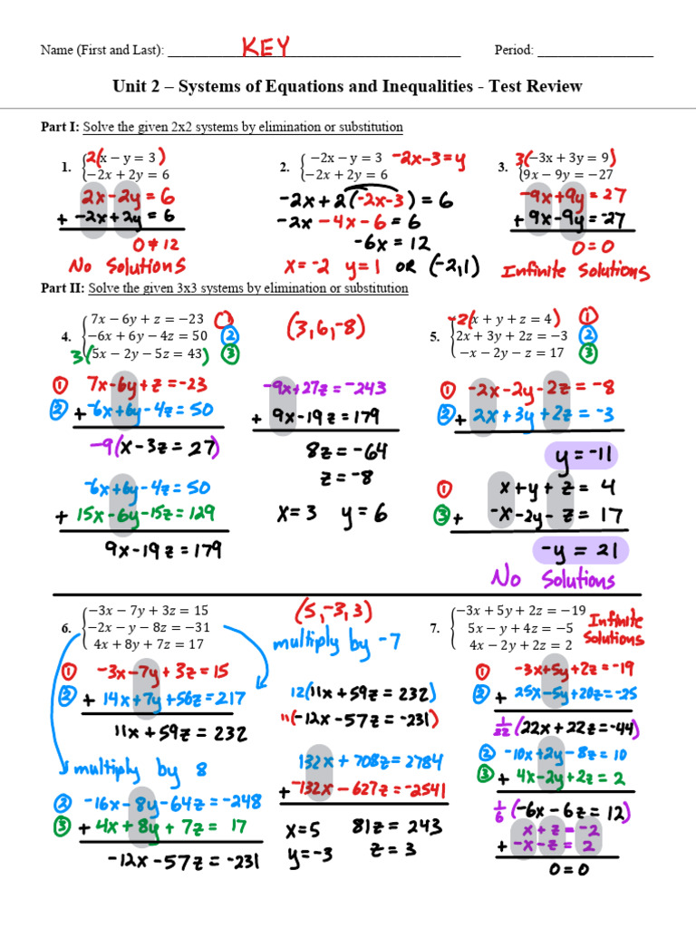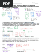 Unit 2 – Systems of Equations and Inequalities - Test Review