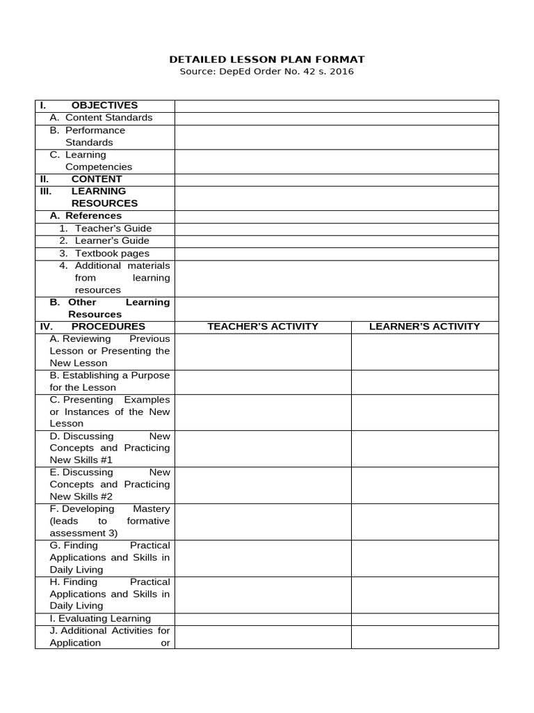 DETAILED LESSON PLAN FORMAT
